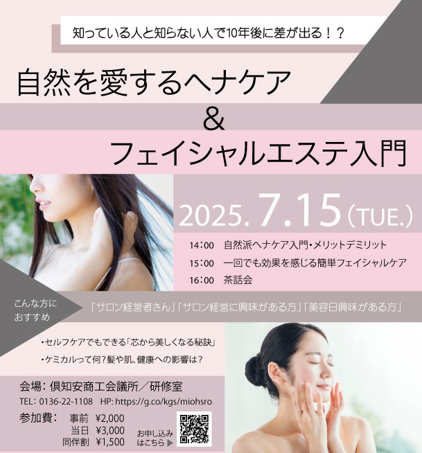 ヘナケア&フェイシャルケアセミナー2025年7月15日火曜日・14:00~